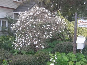 - Showy white flowers with slight pink tinge; flowers from an early age.